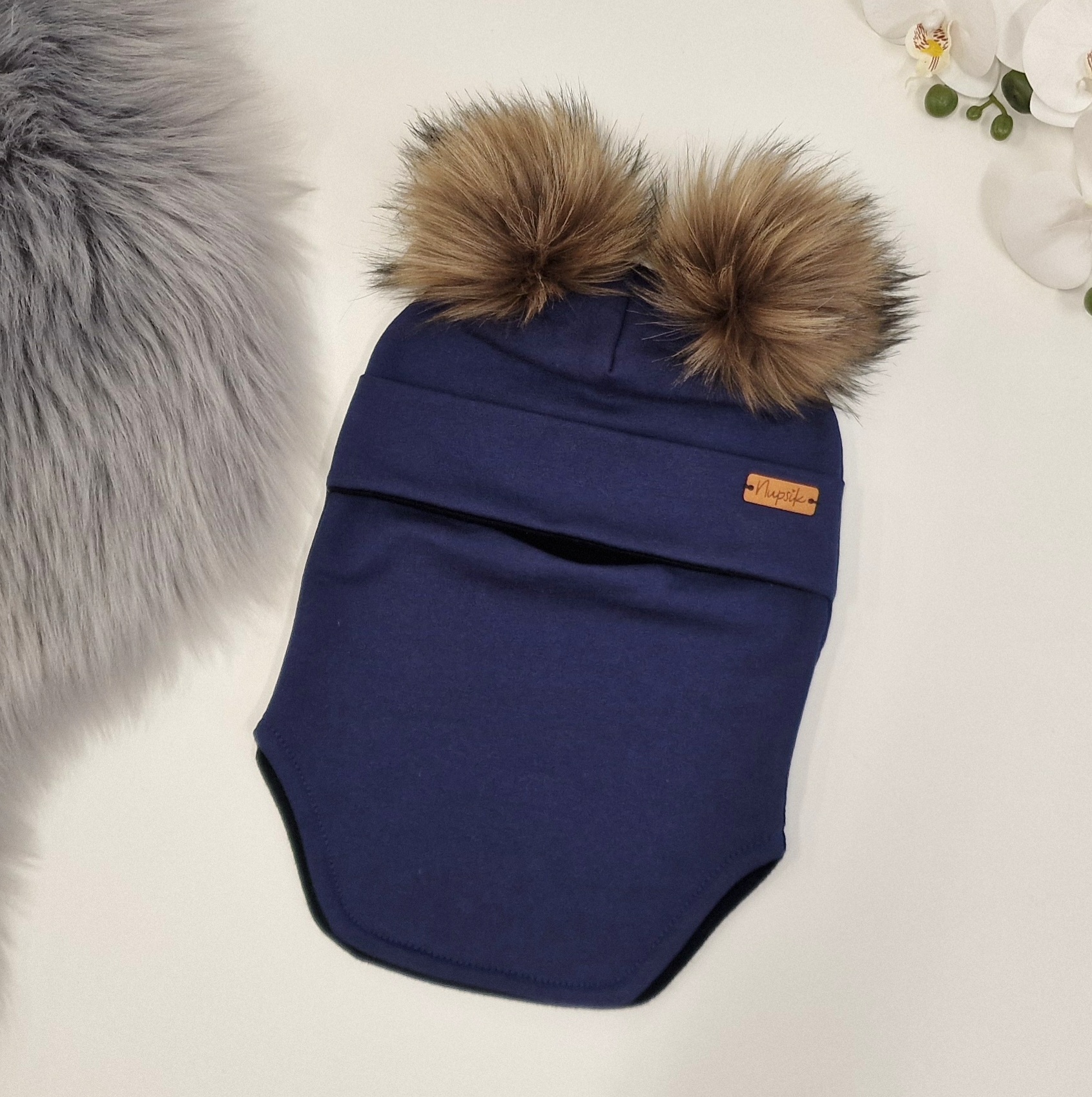 Mütsitutid väikesed 2tk ja Suur mütsitutt keskele – Kõik mütsitutid on kunstkarusnahast ( 100% polüester) ja valmistame neid ise käsitsi ning sobitame suuruselt ja värvilt vastavalt mütsi suurusele ning kangale, et tulemus jääks ilus. Mütsituttidega mütse võib pesumasinas pesta, kuid nagu kõigi kangaste puhul, mida madalamad temperatuurid ja väiksemad pöörded, seda kauem kestab.